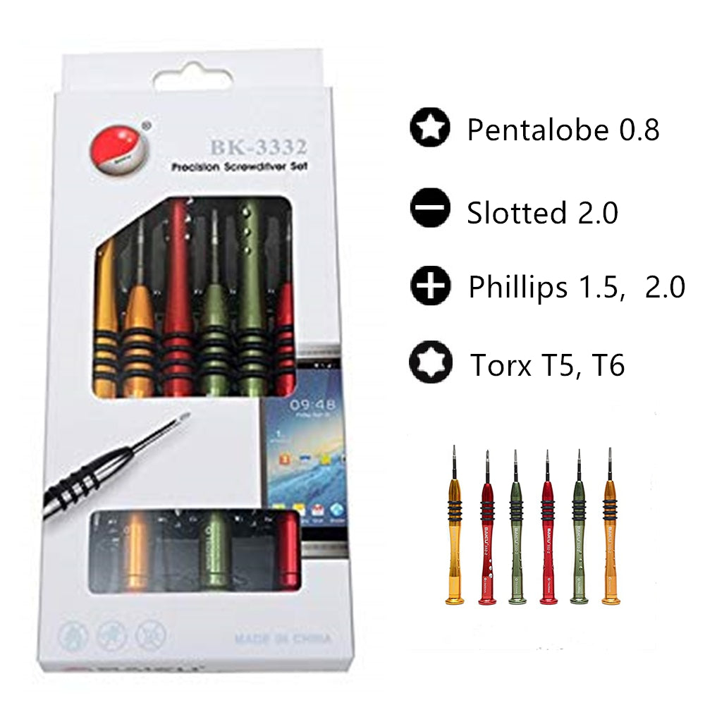 6サイズ1つ、カラー精密ドライバーセット、携帯電話、時計の修理用、合金鋼ハンドル、クロムバナジウムヘッド、DIY Baku BK-3332 (6ドライバー)