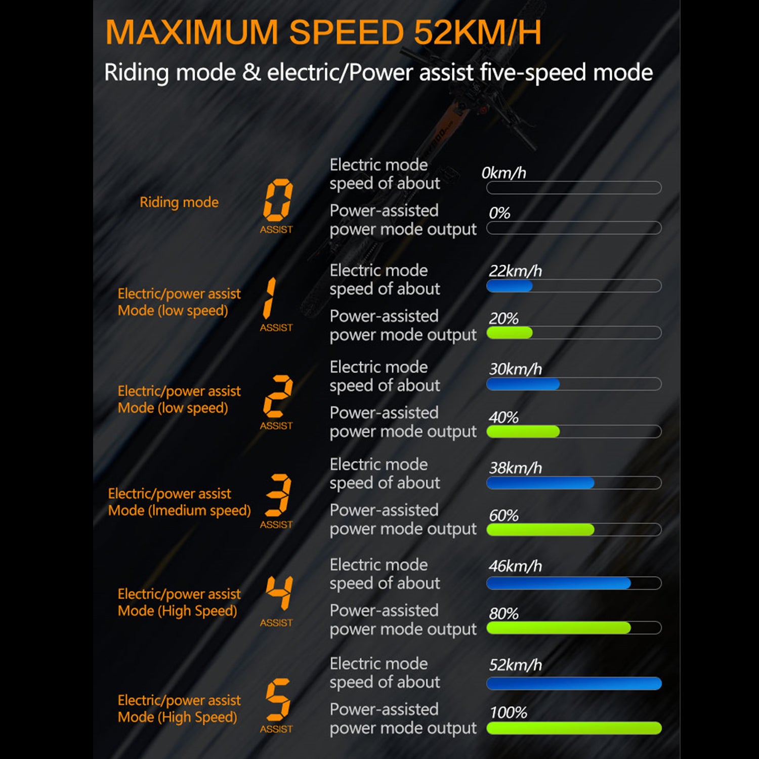 Three Riding Modes: [Pedal Assist Mode]-The motor will assist you with continuous power as you pedal the bicycle. [Fully Electric Mode]-Just twist the throttle (do not need to pedal). [Manual Mode]-Stepping on the pedal just as the common bike.