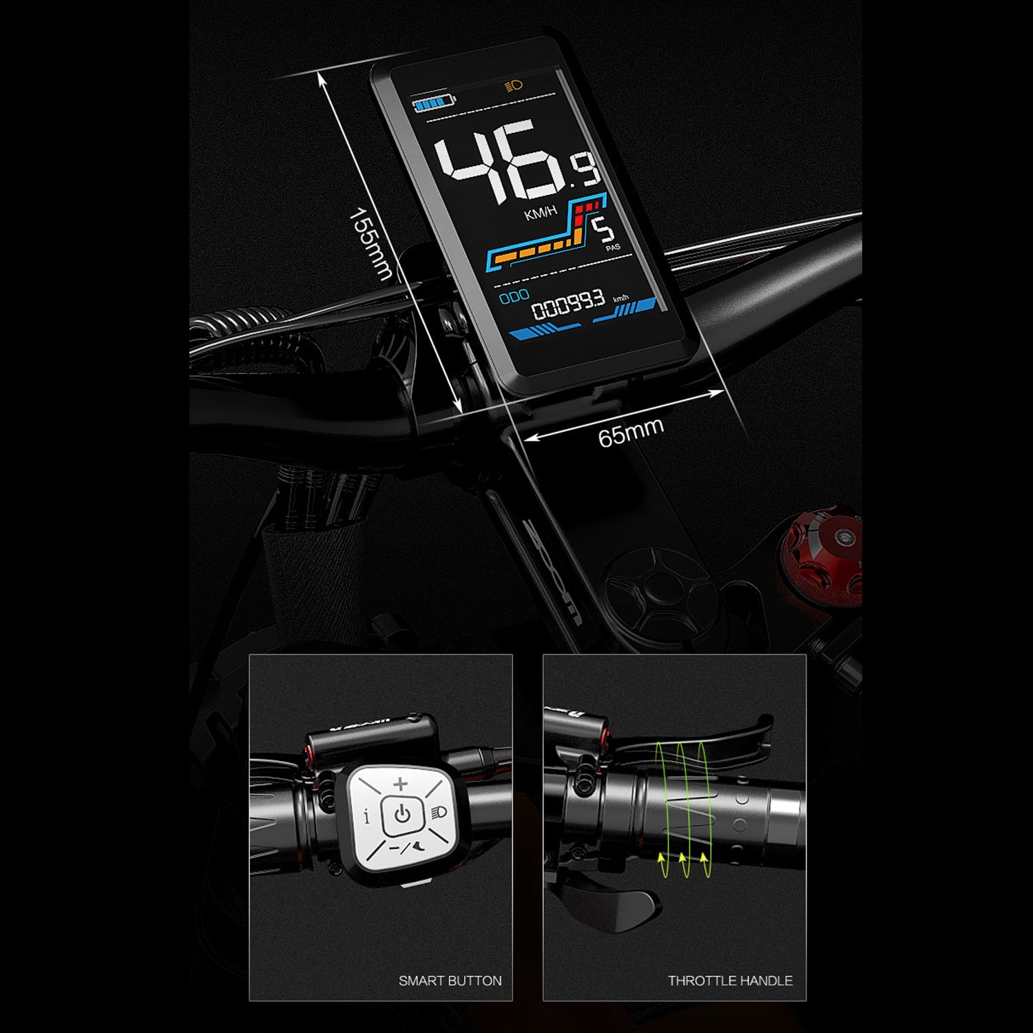 Multi-function Display: Equipped with LCD display, so you can check the riding data more conveniently, such as speed, battery level, odometer and so on, you can also switch the pedal assist level according to the road condition.