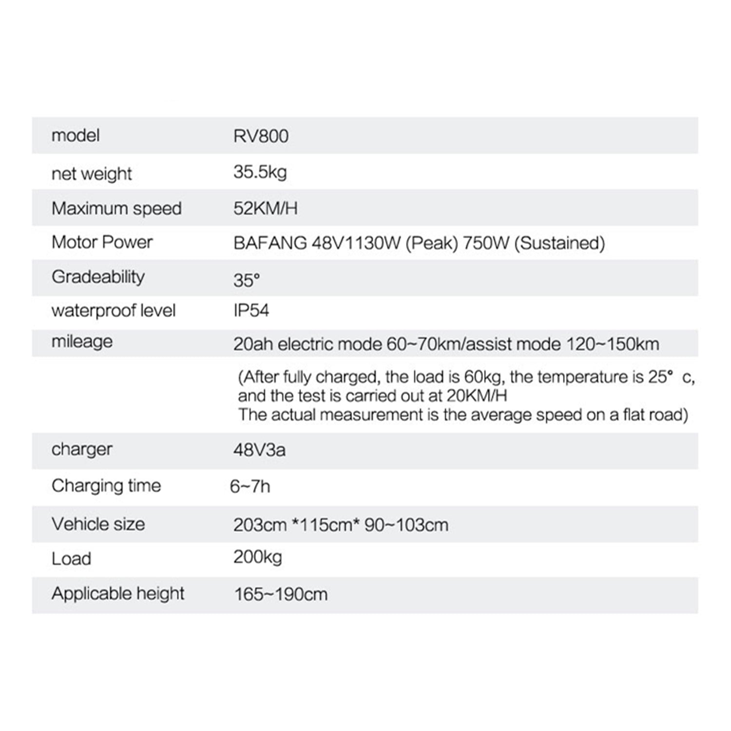 RV800 PLUS 48V 20Ah Fashionable Electric Bike 26 Inch 7 Speed Transmission system Up To 52Km/h Front & Rear Hydraulic Disc Brake
