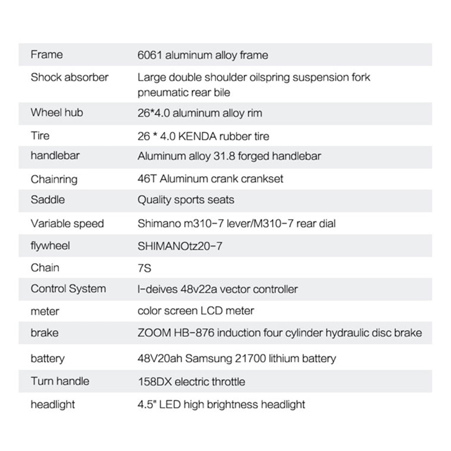 Motor: 48v 750w Ba fang brand motor, waterproof grade IP54