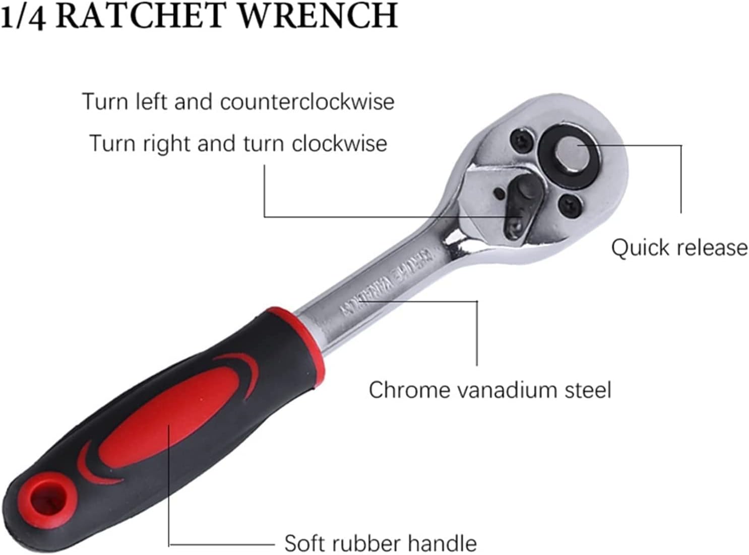 3. 急速脱落ラチェットレンチ(正と負の調整可能)により、操作速度が向上します。 オープンスロットル、エアコン、シートナット、タイヤフェンダー、車のドアロック、家庭用(基本を含む)で通常使用される小さなネジナットに最適なツールセットです。